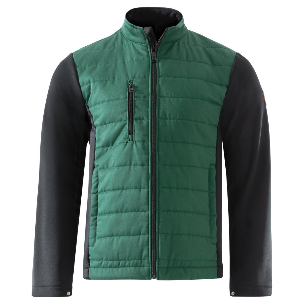 Die Krähe Evo Softshell-Steppjacke stellt eine ganz neue Interpretation der klassischen Bundjacke dar. Dabei ist sie jedoch deutlich bequemer und ein echter Hingucker.»,Komfort, Strapazierfähigkeit und Industriewäschetauglichkeit – für diese Jacke sind das keine Widersprüche.«,Die Krähe Evo Softshell-Steppjacke überzeugt in allen Farbvarianten durch ihr innovatives Design. Schwarzer Softshell und die variierenden, farbigen Steppeinsätze sorgen für einen coolen Auftritt.Erhältlich in schwarz/schwarz, grau/schwarz, marine/schwarz, kornblau/schwarz, grün/schwarz und braun/schwarz.Napoleontasche rechtsZwei Nahttaschen im VorderteilHandytasche innen rechts mit Riegel und KlettverschlussReißverschluss oben mit Zipper GarageArmabschluss zum Verstellen mit DruckknöpfenDie Krähe Evo Softshell-Steppjacke wurde in unserem Designcenter in Baden-Württemberg entwickelt und wird ausschließlich in einer von drei europäischen Produktionsstätten gefertigt. Neben einer hohen Produktqualität und fairen Arbeitsbedingungen in den Fabriken, schonen die kurzen Wege auch unsere Umwelt.Die Jacke eignet sich ideal als Werbeträger für Ihr Unternehmen. Mittels Druck und Stick machen wir die Krähe Evo Softshell-Steppjacke – in Verbindung mit einer passenden Arbeitshose – zu Ihrer individuellen Firmenkleidung. Alle neuen Krähe Artikel verzichten auf Taschen im linken Brustbereich und überlassen Ihnen somit die attraktivste Fläche für Ihr Logo.